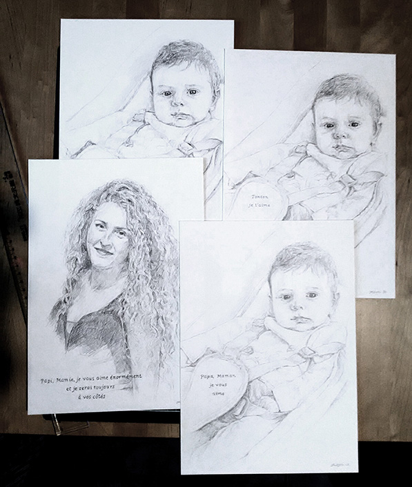 Réalisons ensemble votre portrait d’art personnalisé. Choisissons la technique qui sublimera votre sujet (huile, acrylique, crayon, aquarelle ou fusain). »